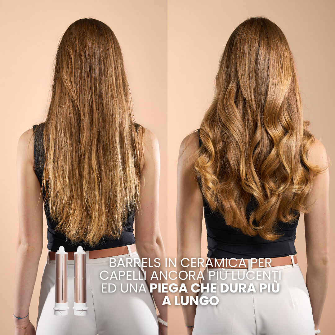 - Crea ricci duraturi: grazie a barrel in ceramica tormalina che sfruttano l'effetto coanda.