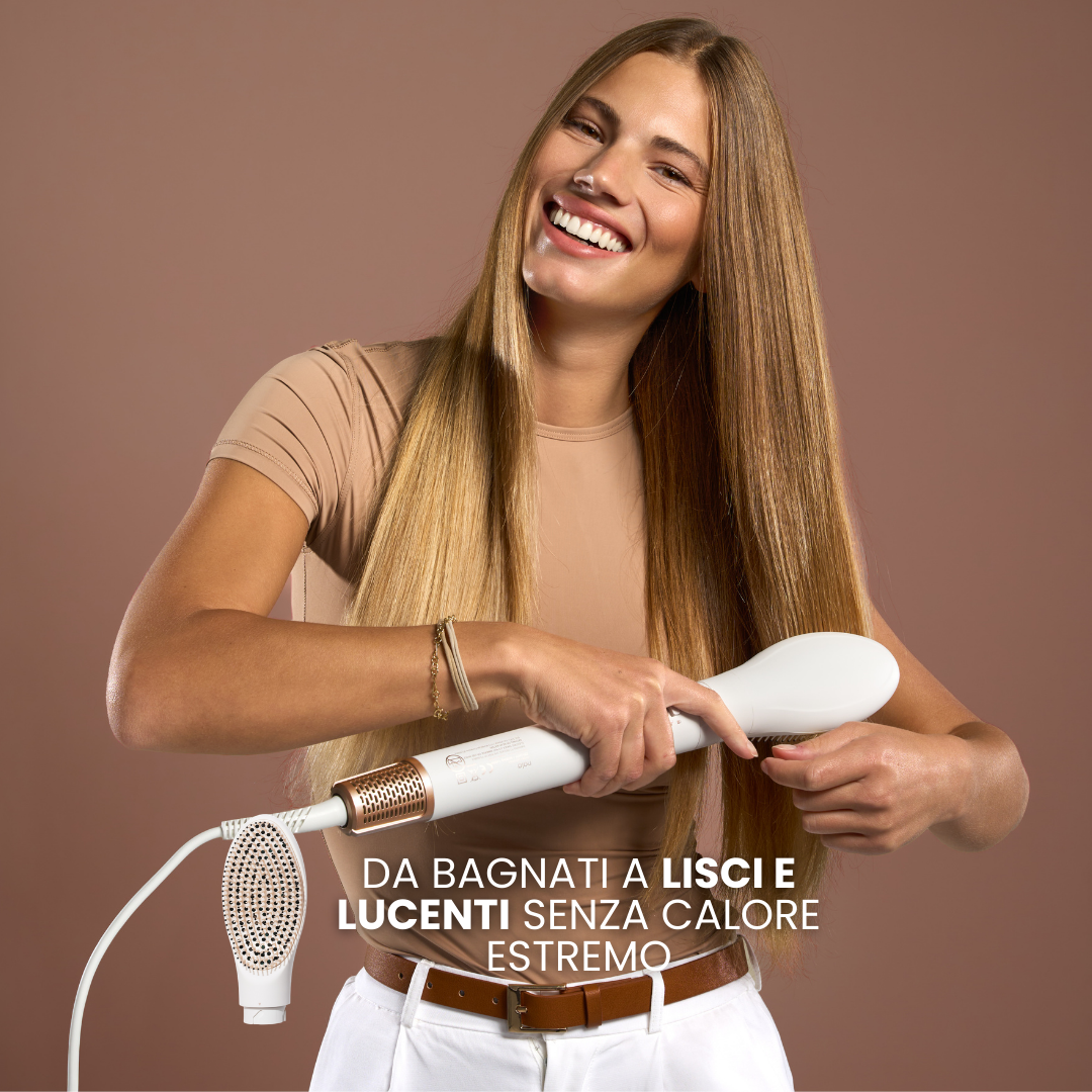 - Asciuga, liscia, arriccia e volumizza: è come avere un intero salone sempre a portata di mano.